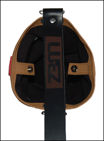 Runde Handtasche aus Kunstleder Microfaseroptik fein gerippt. Die Tasche ist mit Swarovski-Steinen geschmückt. Innenmaterial aus Polyestergewebe mit schönem Chamois-Wildledereffekt. Die Öffnung der Tasche wird durch eine Lasche mit Druckknopf verkleinert. Sie verfügt über eine Innentasche mit Reissverschluss. Der Bändel ist aus Rindsleder und wird mit Hosenträgerclips unabreissbar an der Tasche befestigt.